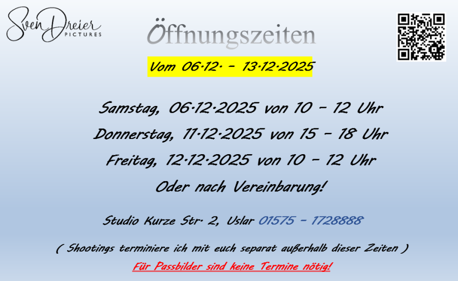 Hier findet ihr meine aktuellen Öffnungszeiten.